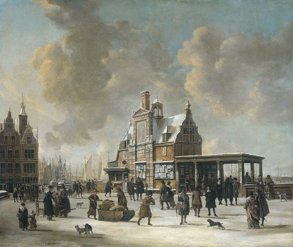 Deze afbeelding van "Het Paalhuis en de nieuwe brug te Amsterdam in de winter" door Jan Abrahamsz Beerstraten is beschikbaar gesteld door het Rijksmuseum Amsterdam. |